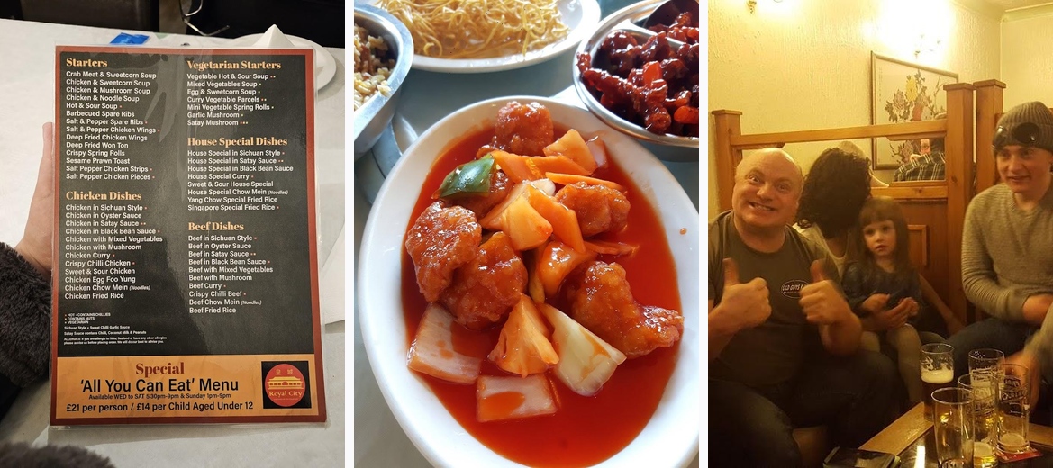 Went to Royal City, all you can eat, with the in- laws, and was very satisfied. We did book a table but I am sure we would have been seated even if we hadn't. We tried a good portion of the starters and even ordered some more won ton. We had king prawn curry, (which I think was shrimp curry) which was very enjoyable, also beef in black bean and chicken in oyster sauce. Fried rice, noodles, garlic mushrooms and vegetables. And everything was very well prepared and tasted very nice. We left very full and happy, will return.